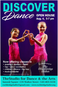 DISCOVER DANCE with us at an Open House on Monday, August 4th from 5:00-7:00 at TheStudio for Dance & the Arts located at 126 Walker Street in Lexington.